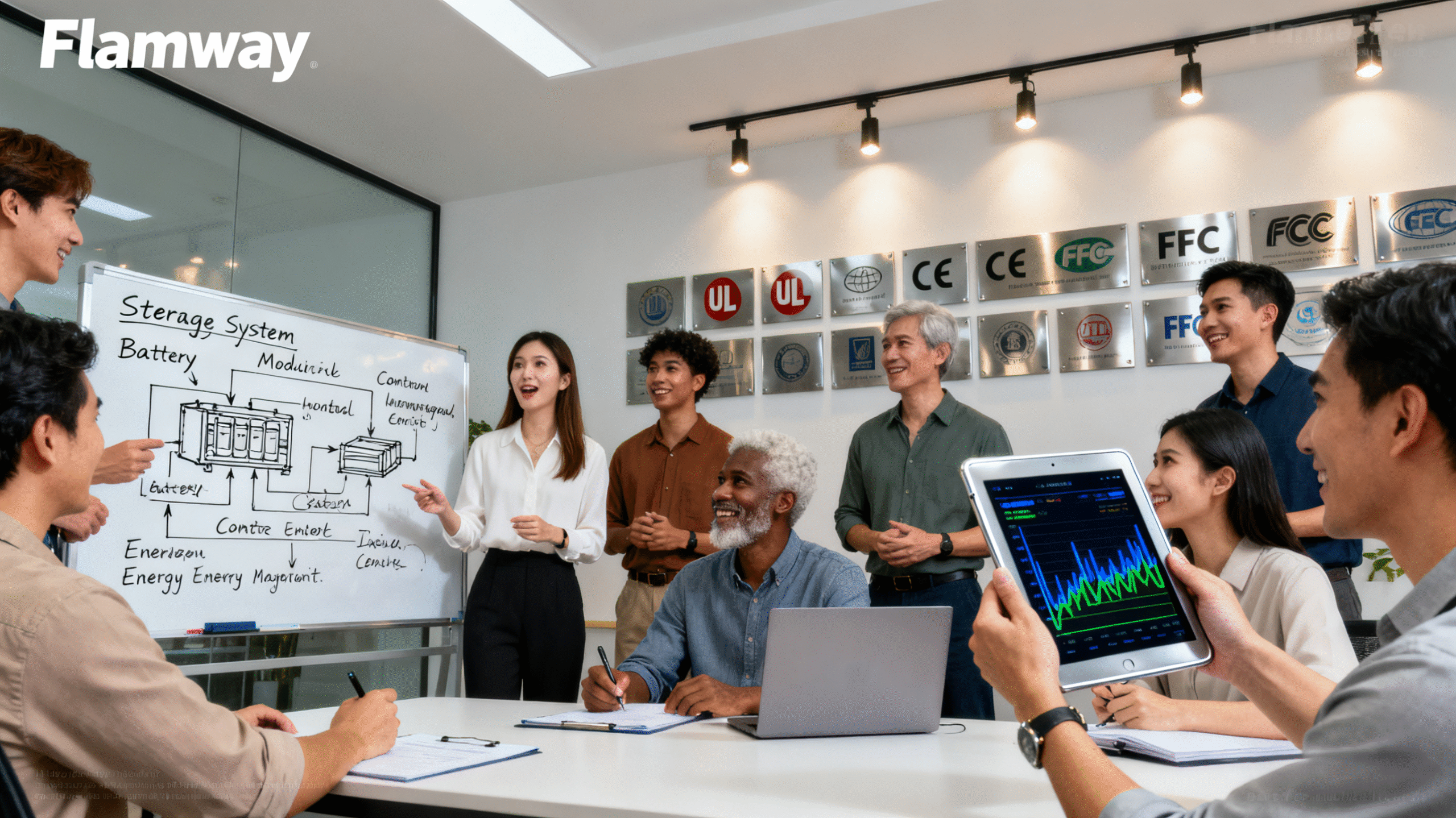 With an average age of 35, the Flameway team comprises “multifaceted energy experts” who excel at optimizing logistics costs in boardrooms, discussing battery module designs in three languages at exhibitions, and dedicating 48-hour sprints to fine-tuning prototype performance in workshops. When a post-95 foreign trade manager hosts TikTok live streams demystifying home energy storage, or a supply chain supervisor sketches production flowcharts during factory tours, we redefine what it means to be a “trader”: not impersonal middlemen, but “Global Co-Creators of Sustainable Living” who understand energy technology, regional needs, and client aspirations intimately. We believe vibrant minds infuse tech-driven energy solutions with the warmth to resonate deeply.